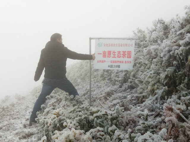 冰中茶,厚厚的冰晶包裹着茶叶,烧香尖生态茶园地处高海拔,每年一次的高寒冰冻,是茶树最好的杀虫,消毒工具。也是烧香尖绝不用农药、化肥的天然保证。高寒冰冻促使高山冰碛岩的风化形成土壤,增加多种微量元素,也是烧香尖生态茶好味道,高品质的原因。
