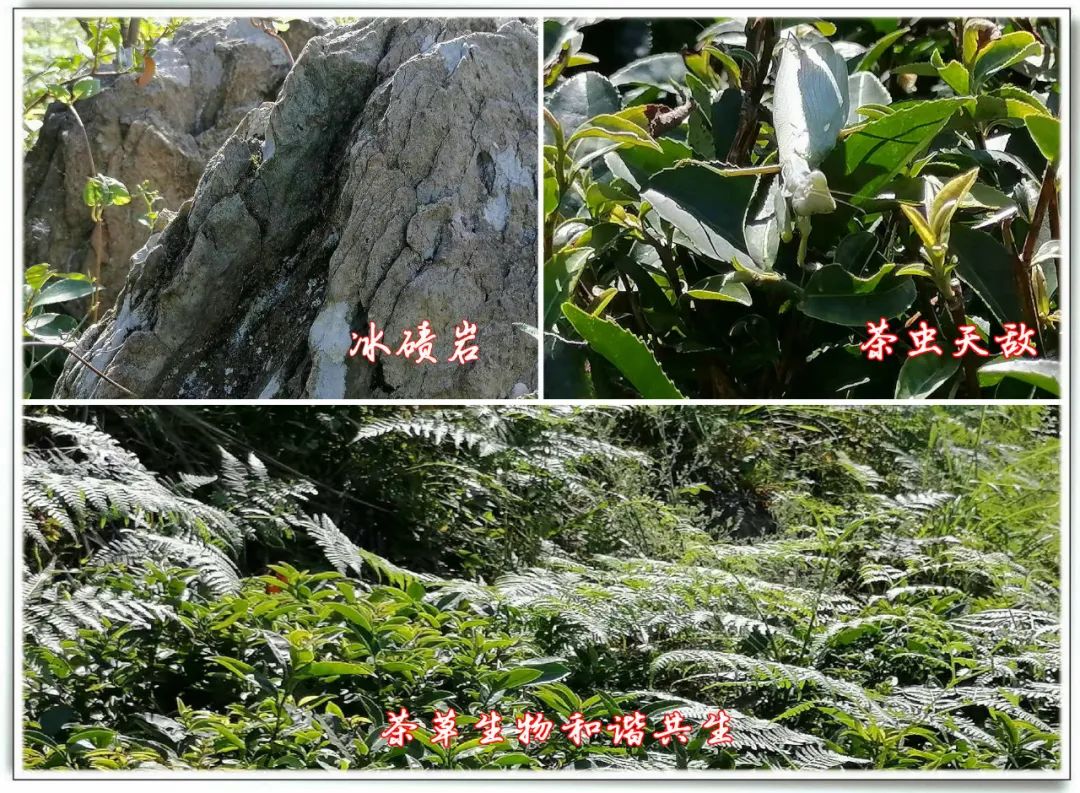 茶树分布在海拔900-1100米的山坡地带,全年气候温和,雨量充沛,茶树生长季节终日云雾缭绕,造就了茶树最佳的生长环境,采摘山中野生茶原叶加工成茶,品质极佳。通过对茶叶和生长地土壤的检测,茶叶